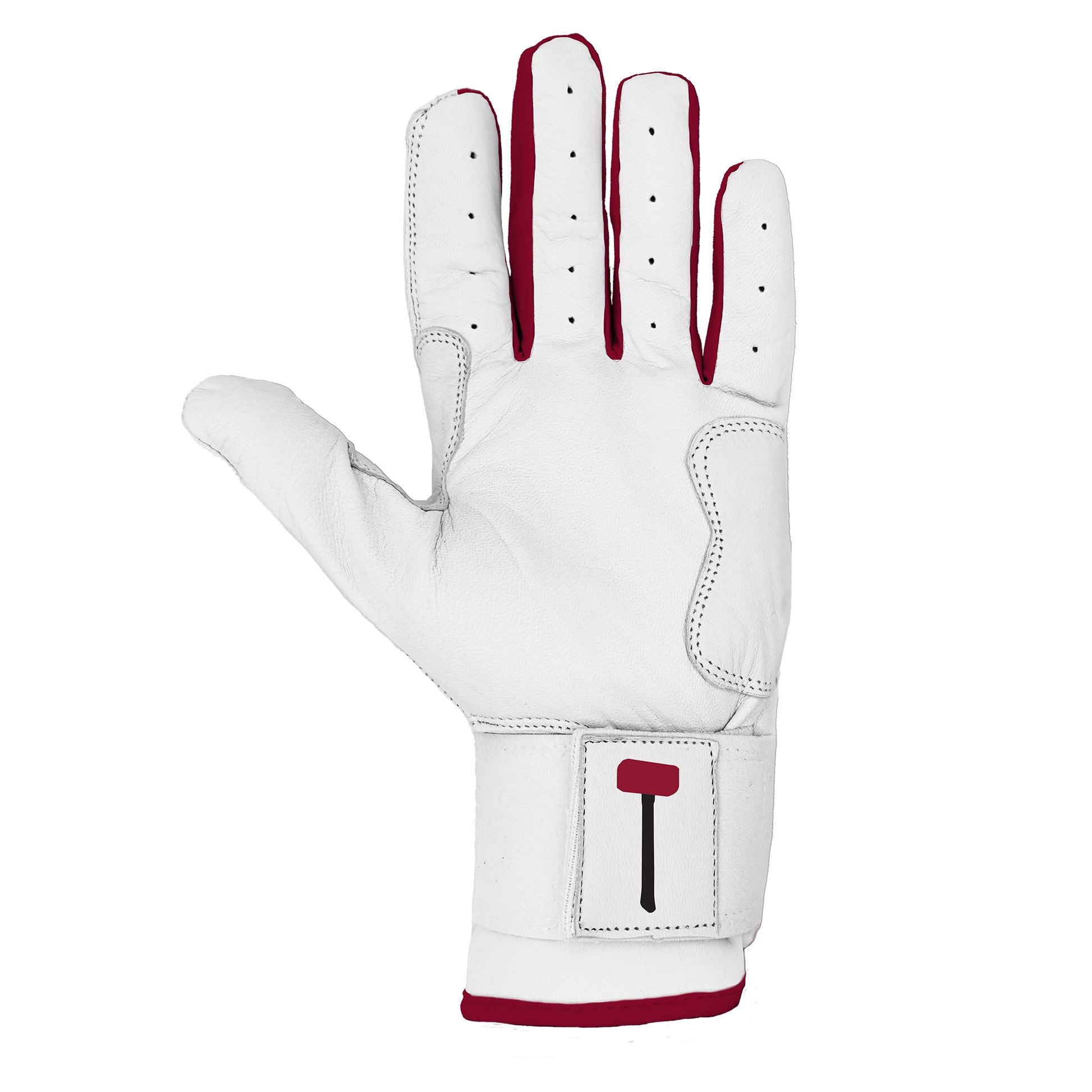 Our gloves are made with high quality soft Cabretta leather. The palm and thumb/forefinger are reinforced with an additional layer of leather for industry leading durability in the areas that receive the most wear while gripping a bat. The extended wrist and dual strap system allow for maximum support at the moment of impact.